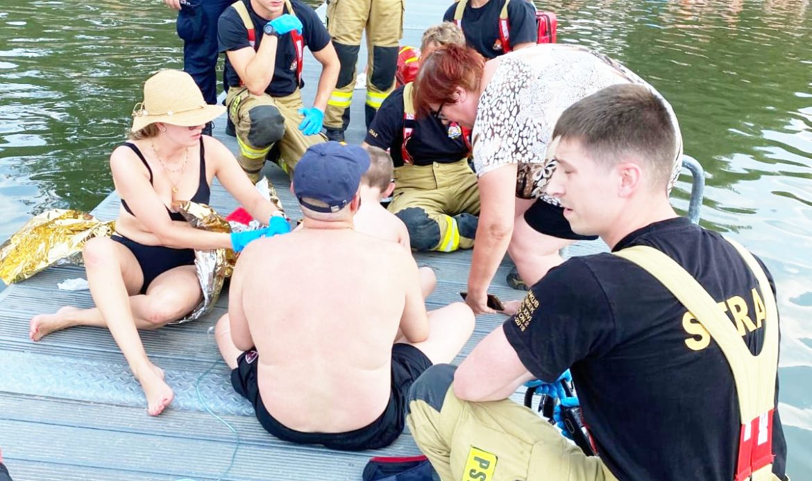 OBORNIKI, POZNAŃ. W środę popołudniu, na kąpielisku „Strzeszynek” w Poznaniu, wezwano pomoc dla 7-letniego chłopca, który po wyciągnięciu z wody znalazło się na pomoście. Na wołanie o pomoc zareagowali ratownicy WOPR oraz Alan Tasarz, który na co dzień pełni służbę w komendzie powiatowej straży pożarnej w Obornikach.
